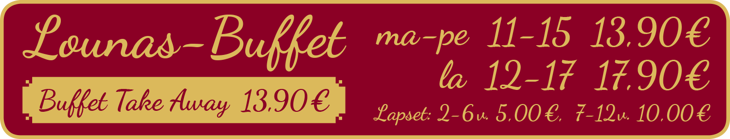Tarjoamme suussa sulavia Thaimaan ja Laosin keittiöiden erikoisuuksia.Voit tutustua ruokalistaan näillä sivuilla, ja poiketa paikan päälle syömään lounaan seisovasta pöydästä tai nauttimaan herkullisista ruokalistamme annoksista. Voit myös soittaa ja tehdä tilauksen ja noutaa ruoat edulliseen Take Away -hintaan ravintolastamme.Voit myös tilata ruuan kotiisi Voltin tai Foodoran kautta.